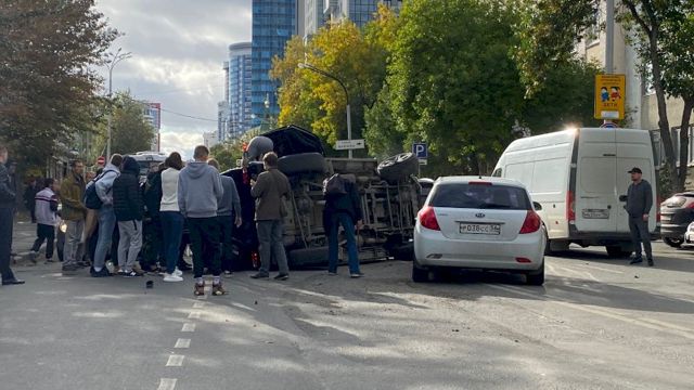 Сегодня днем в центре Екатеринбурге, на Кубышева-Вайнера возле «Дацюк Арены» (бывший стадион «Юность») перевернулся Gelandewagen, сообщили ЕАН очевидцы.