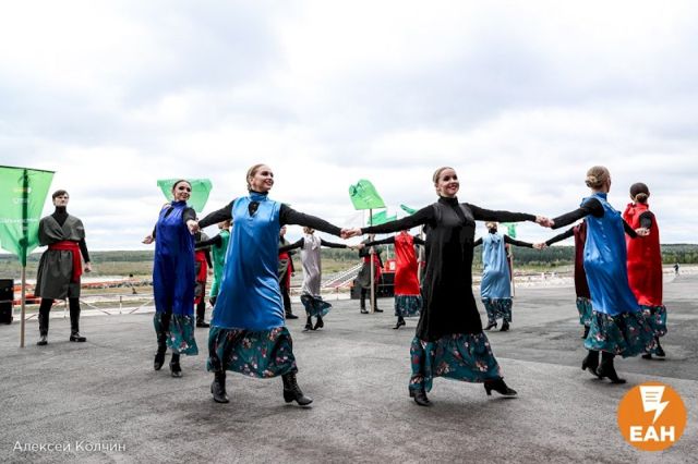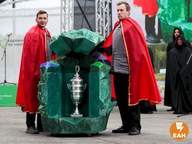 Продолжилась церемония ярким шоу артистов. Бороться инкассаторам предложили за уникальный приз – уральский каменный цветок с кубком, который представила лично Хозяйка Медной горы.