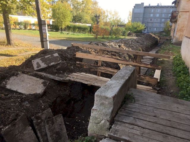 «В нескольких домах и в начальной школе до сих пор нет отопления. В здании начальной школы № 5 находится детский сад № 30, и там, соответственно, тоже нет отопления. В августе во дворах домов все перерыли, видимо, замену труб делали, но до сих пор не закончили работы. Траншеи во дворах домов глубокие и ничем не ограждены, туда могут упасть люди. Люди в домах мерзнут, учителя родителям утром в чате написали, чтоб детей тепло одевали», - рассказал ЕАН юрист Сергей Самков, проживающий рядом с отключенными домами.