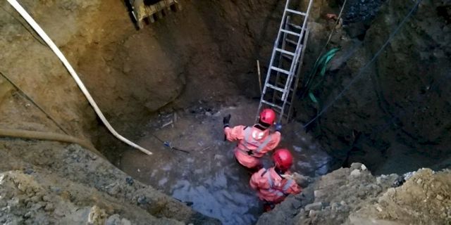 Работу осложняет то, что котлован заполняется грунтовыми водами. Сейчас ведется откачка воды с помощью насосов.