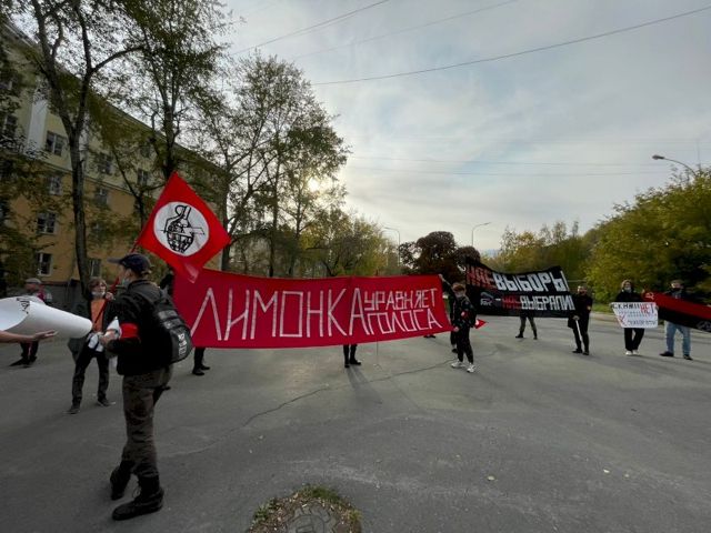 Для давления на власть выступающие призвали к массовому бойкоту выборов. Выкрикивали радикальные лозунги: "Рабочим винтовки, чинушам - веревки". Закончили они акцию со словами «система сдохнет если вы станете живыми».