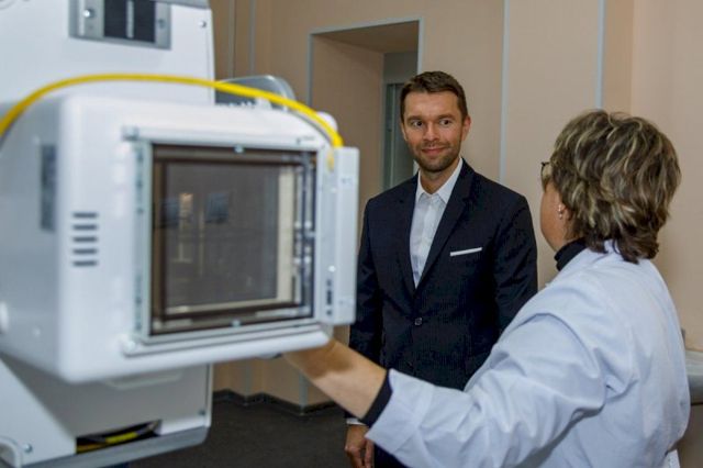 «Выровняли и покрасили стены, поклеили обои, установили подвесной потолок, заменили двери, установили новое рентгенозащитное окно и специальные ставни. Все это - для защиты от излучения не только медиков и пациентов, но и прохожих», - рассказал ЕАН сам депутат.