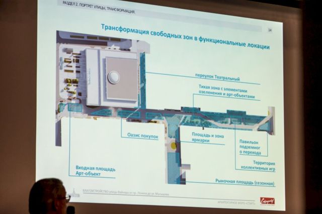 Также в числе предложений - сделать верхнее освещение и избавиться от фонарей, расположить «оазис покупок» между «Пассажем» и Успенским. На оазисе можно сделать стенды, на которых появятся макеты исторического Екатеринбурга и портреты исторических персонажей. Также около въезда в подземный паркинг архитекторы предложили расположить амфитеатр с арт-объектом.