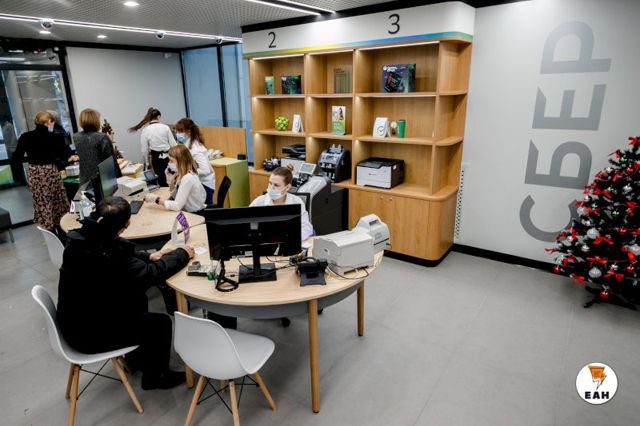 Сбер открыл четвертый офис нового формата в Екатеринбурге. Подразделение на ул. Гагарина, 35б, неподалеку от главного корпуса УрФУ, много лет знакомо клиентам банка, но сейчас, после капитального ремонта, оно преобразилось полностью. Теперь здесь можно не только получить финансовые услуги, но и приобрести "умные" гаджеты, выпить кофе с деловым партнером, отправить посылку, получить и даже примерить заказанный через интернет товар. Подробности – в фоторепортаже ЕАН.