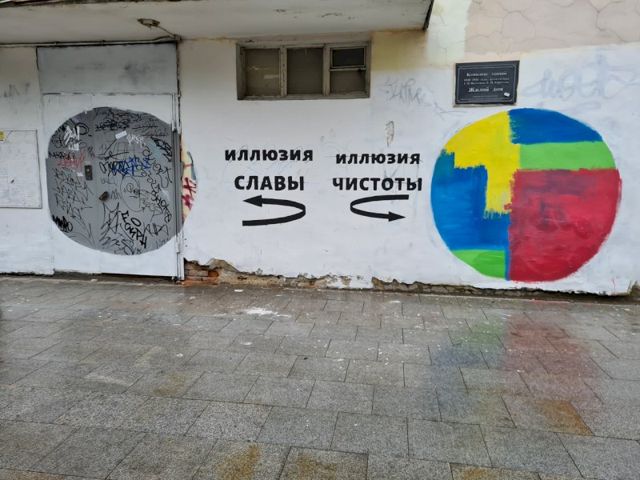 Небоскреб «Высоцкий»; стрит-арт, выполненный в рамках фестиваля «Карт-Бланш», «Коляда-театр» и Оперный театр
