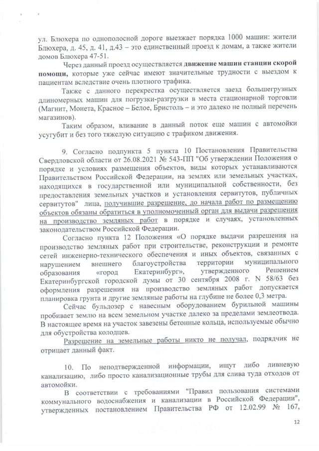 Жители домов 16-16Б, 41-45 на улице Блюхера в Екатеринбурге написали коллективное обращение в свердловскую прокуратуру и в администрацию города по поводу строительства большой автомойки на пустыре под их окнами. За полдня активистам удалось собрать 280 подписей под документами, сообщили ЕАН в местном ТСЖ.