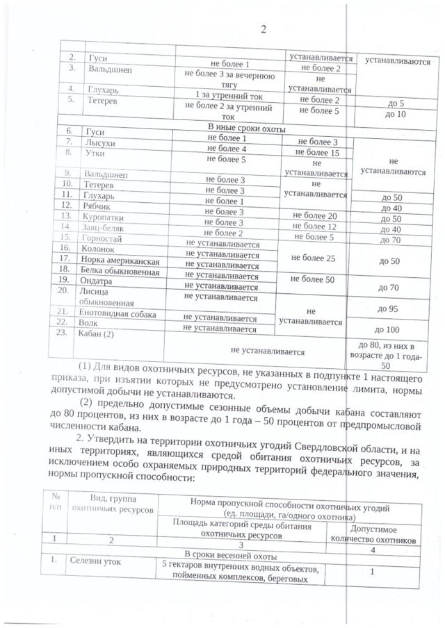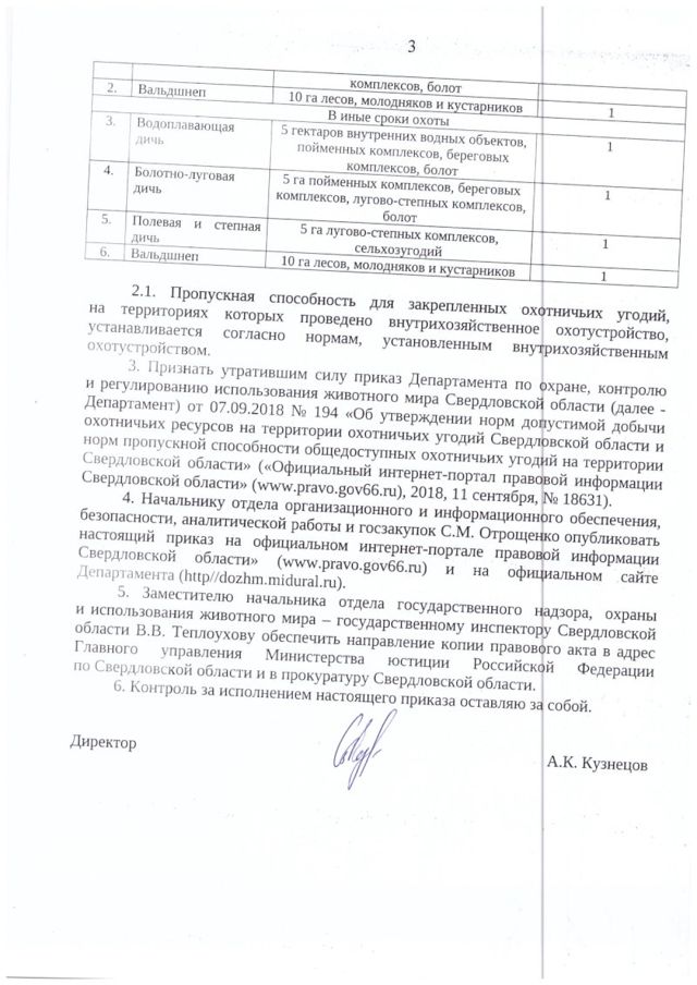 Директор департамента по охране, контролю и регулированию использования животного мира Свердловской области подписал приказ, устанавливающий нормы допустимой добычи охотничьих ресурсов. Приказ опубликован на сайте департамента.