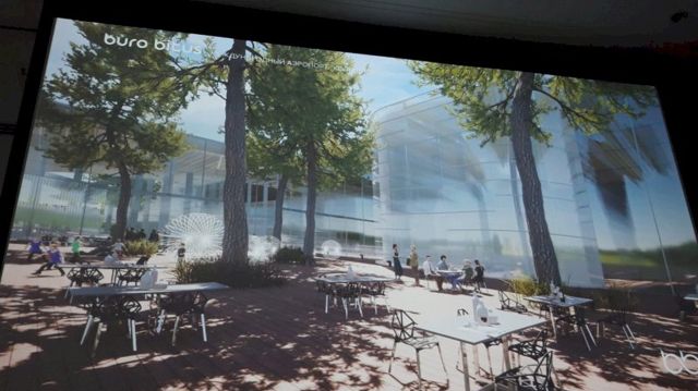 «Чтобы все не выглядело как серия разноэтажных построек, мы пришли к решению накрыть все единой кровлей. Это будет полноценный навес. Сейчас вы приезжаете и находитесь под открытым небом, а будет большой навес для комфорта», - отметил Битус.