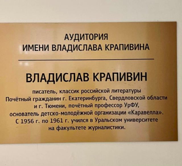 Напомним, аудитория имени Владислава Крапивина появилась в УрФУ в феврале 2021 года. Легендарный детский писатель Владислав Крапивин скончался в больнице Екатеринбурга 1 сентября 2020 года. Владислав Петрович закончил факультет журналистики Уральского государственного университета им. А. М. Горького (ныне УрФУ) и работал корреспондентом газеты «Вечерний Свердловск».