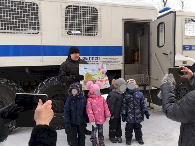 В Нижнем Тагиле воспитанникам детсада и ученикам младших классов устроили экскурсию в автозак в рамках месячника защитника Отечества.