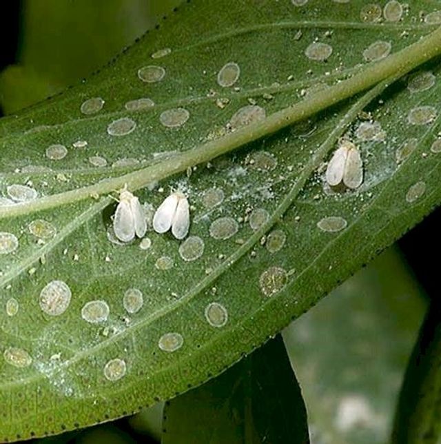 Белокрылки – мелкие насекомые (1-2 мм), во взрослом состоянии напоминающие микроскопических молей. В закрытом грунте многих стран табачная белокрылка является одним из важнейших вредителей сельскохозяйственных культур. Питаясь соками растений, вредитель вызывает увядание листьев и разрушение фотосинтезирующего аппарата. Симптомы поражения: имаго белокрылок находятся на различных частях растений, скопления личинок белокрылок обнаруживают на нижней стороне листьев. Обычно там же присутствуют выделения личинок в виде «медвяной росы», которые при высокой влажности покрываются сажистыми грибками. Пути распространения: переносится на срезанных растениях, горшечных культурах, рассаде, гербариях и сухоцветах.