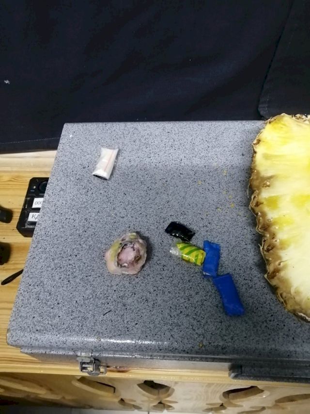 «В ИК-52 в поселке Восточном Камышловского района в ходе реализации оперативной информации сотрудниками учреждения в комнате приема передач была досмотрена передача на имя осужденного К. от гражданина С., проживающего в Богдановическом районе. В посылке находился ананас. Когда его разрезали, внутри были обнаружены и изъяты 6 свертков с веществом белого, серого и коричневого цветов», - сообщили ЕАН в пресс-службе ГУФСИН по Свердловской области.