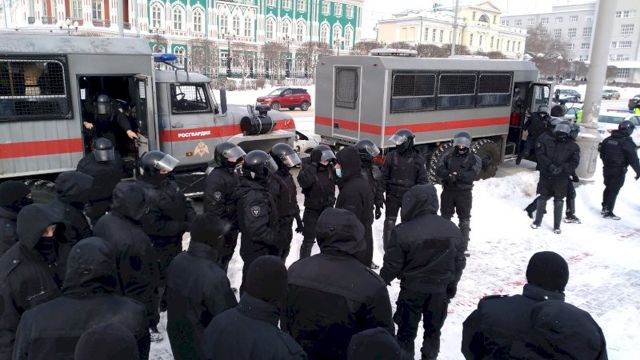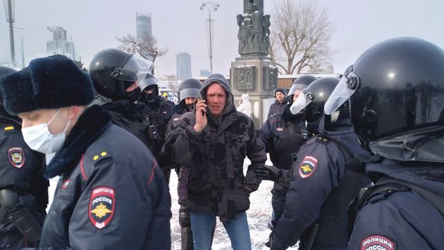 В центре Екатеринбурга полиция и Росгвардия 6 марта пресекли несанкционированную акцию против военной спецоперации на Украине.