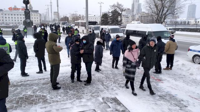 Через какое-то время к площади приехали неизвестные люди в черной одежде без шевронов и в балаклавах. Один из них сообщил полицейским, что поступило распоряжение задерживать всех подряд. После этого силовики начали отправлять в автобусы и патрульные машины всех, кто оказался поблизости. Один из задержанных опознал в «своем» автобусе экскурсионный транспорт.