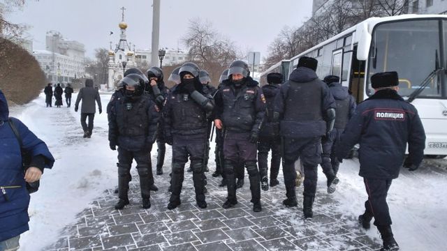 Поскольку информация о подготовке к протестам в соцсетях распространялась несколько дней, силовики к «приему» участников оказались готовы. В назначенный день с 13:00 по периметру площади Труда (назначенной точкой сбора) выстроилось несколько автобусов с полицейскими.