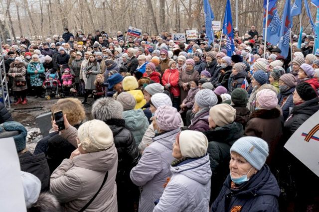 Участие в митинге приняли 3 тыс. человек: ветераны Великой Отечественной войны, труженики тыла, депутаты гордумы, волонтеры и студенты. Мероприятие представляло собой концерт с патриотическими песнями, со сцены была предоставлена возможность выступить со словами поддержки в адрес армии для всех желающих.