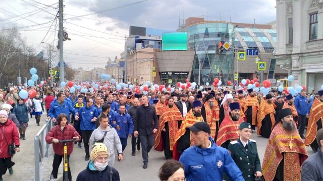 В Екатеринбурге 24 апреля прошел общегородской пасхальный крестный ход. По оценке корреспондента ЕАН, в нем приняли участие от 3 до 4 тыс. человек.
