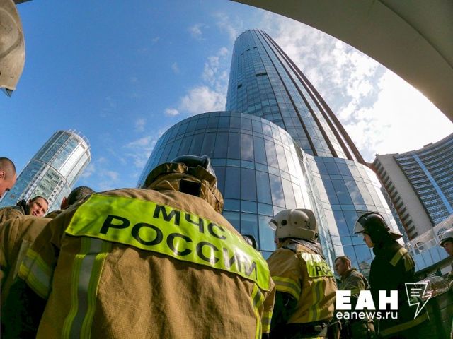В "Башне Исеть" прошли учения свердловского МЧС. Спасатели отрабатывали действия на случай, если в небоскребе произойдет пожар.
