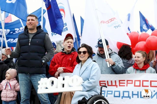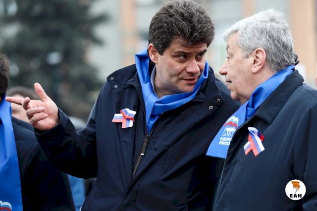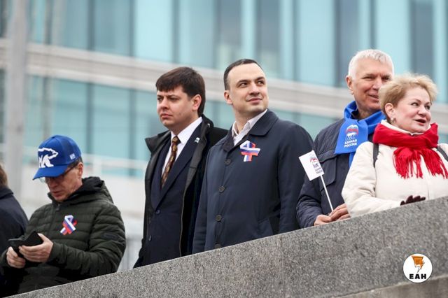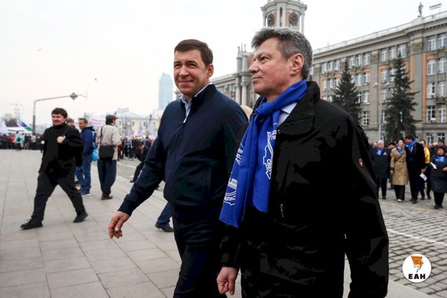 Когда все приготовления к началу демонстрации были окончены, во главе колонны выстроились руководители области и города: губернатор Евгений Куйвашев и мэр Екатеринбурга Алексей Орлов. В один ряд с ними встали председатель свердловского Заксобрания Людмила Бабушкина, первый вице-спикер областного парламента, бывший мэр Екатеринбурга Аркадий Чернецкий. Впервые за долгое время на публике появился еще один бывший руководитель уральской столицы, а ныне сенатор Александр Высокинский.