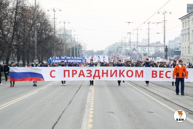 В Екатеринбурге впервые за последние два года прошло полномасштабное шествие, посвященное празднику весны и труда. По традиции многотысячная демонстрация во главе с руководством области и города прошла по проспекту Ленина до площади 1905 года, где состоялся митинг с последующим концертом.
