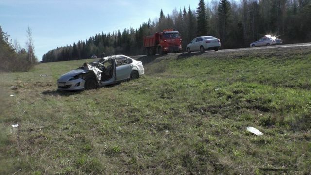 Авария произошла на 292-м км трассы Пермь - Екатеринбург. Водитель Peugeot не справился с управлением, съехал с дороги и несколько раз перевернулся.
