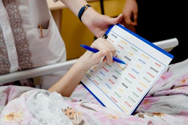 «Ежедневно выполняем различные задания на удержание контроля внимания, мы называем не тот цвет, который написан, а тот, каким раскрашено слово. Задание специально путающее. Каждый день ориентируемся в текущем числе. Сначала Славе было сложно это делать, но при помощи календаря мы тренируем и этот навык», — отмечает врач-нейропсихолог Екатерина Романова.