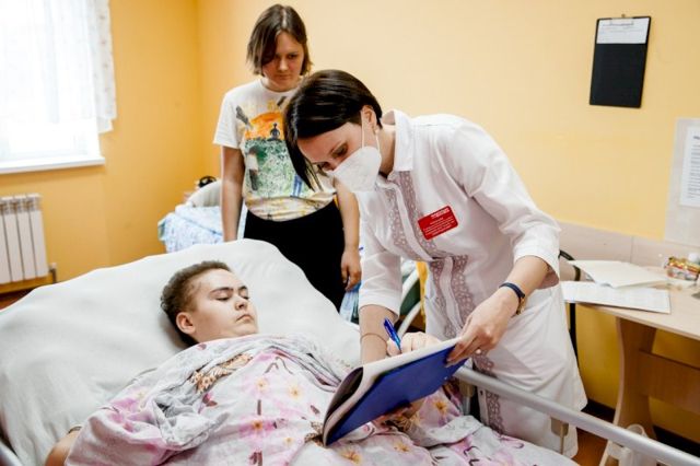 Перед персоналом клиники стоит сложная задача — вернуть тело юноши в вертикальное положение. Специалисты проводят пассивную разработку суставов, чтобы восстановить мышечную память, нарастить мышцы и вернуть им тонус для дальнейшей самостоятельной жизни.