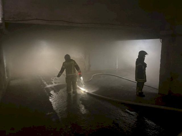 Прибывшие на место специалисты зафиксировали, что горят отделка гаражного бокса и два автомобиля на площади 60 кв. м. Тушение пожара осложнялось сильным задымлением. К 22:42 открытое горение удалось ликвидировать.