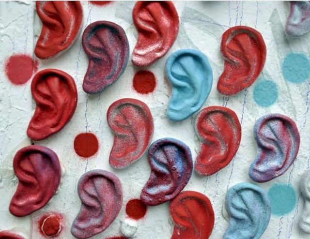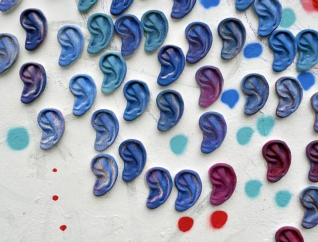 В центре Екатеринбурга появился арт-объект, выполненный из ушей. Художник Егор «Горе» приклеил несколько сотен ушей к стене. Получившаяся композиция также визуально напоминает ухо.