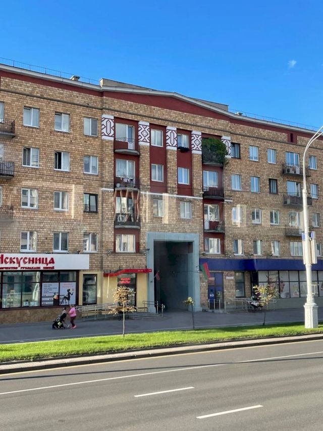 Минск был основан в 1067 году, но в городе практически нет зданий старше 100 лет, поскольку все они были уничтожены во время Великой Отечественной войны. Свое современное устройство с широкими улицами и застройкой в стиле сталинского ампира центр города получил после войны. Тем не менее здания, возведенные в это время или восстановленные после боевых действий, отмечены памятными знаками на белорусском языке по типу табличек, которые можно встретить на архитектурных памятниках в России. И все эти здания все еще выглядят как новые. На них нет трещин на фасаде, облупившейся штукатурки. И такой же приличный внешний вид здания сохраняют и во дворах, в которые, кстати, открыто можно зайти.
