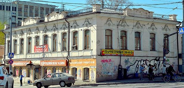 По данным управления государственной охраны объектов культурного наследия Свердловской области, усадьба на пересечении Сибирского проспекта (современная улица Куйбышева) и улицы Васенцовской (современная улица Луначарского) принадлежала «купеческому брату» Антону Алексеевичу Волкову. На ней располагались: каменный двухэтажный дом, полукаменный флигель и деревянные службы. В доме на первом этаже работали винный и бакалейный магазины. Главный жилой дом усадьбы был построен в 1880-е годы по проекту архитектора М.Д. Реутова. В последние годы в усадьбе располагались магазины. Флигель усадьбы быв включен в реестр выявленных объектов культурного наследия.