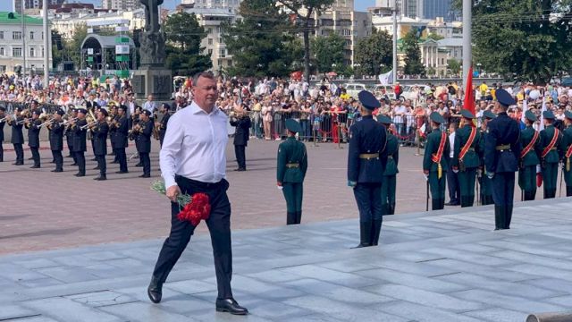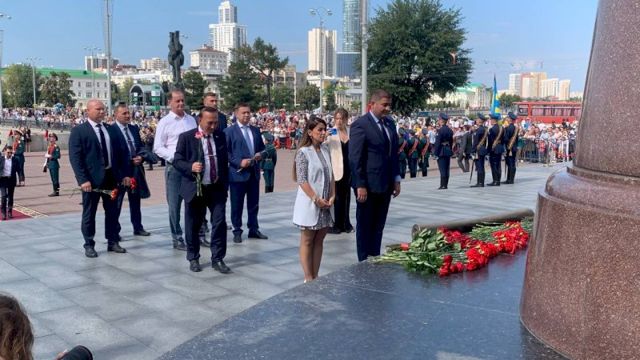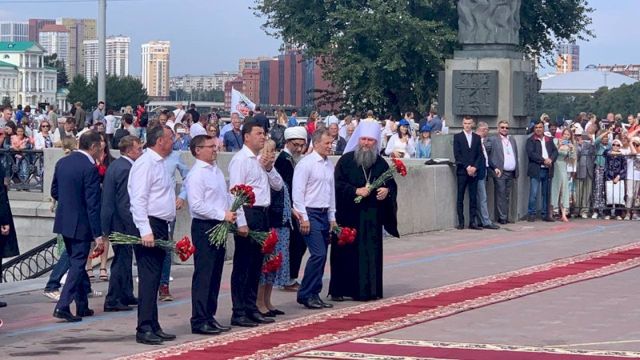 В Екатеринбурге 20 августа в день города прошло традиционное возложение цветов к памятнику основателям уральской столицы. В мероприятии приняли участие руководство Свердловской области и Екатеринбурга, а также представители депутатского корпуса и религиозных организаций.