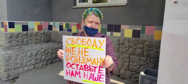 К музею Невьянской иконы вышла екатеринбурженка Надежда Сайфутдинова с пикетом в поддержку Евгения Ройзмана. Об этом сообщает корреспондент ЕАН.
