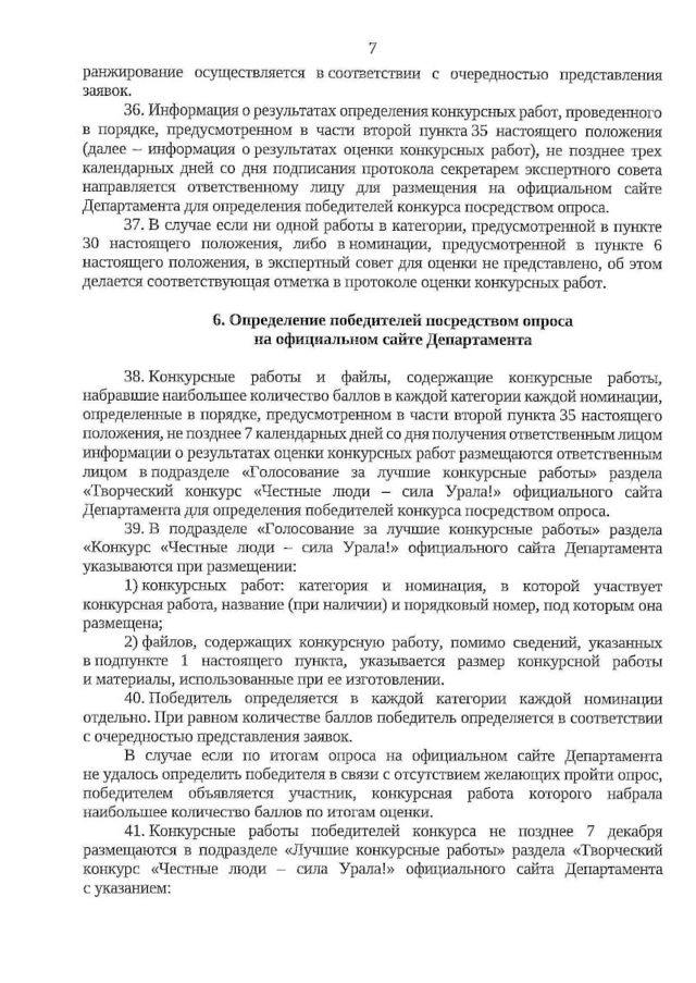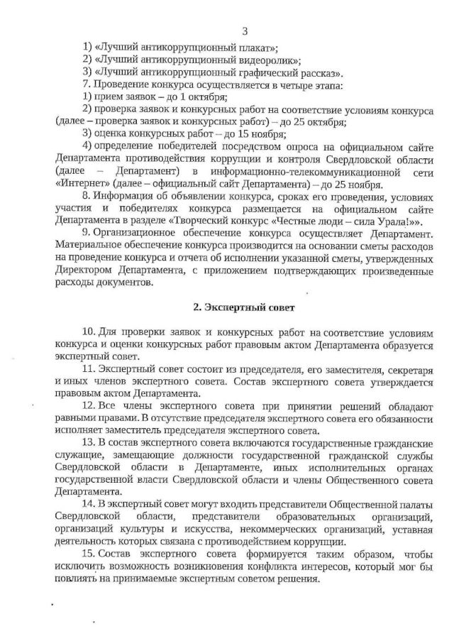 Положение о конкурсе «Честные люди — сила Урала!» утвердил департамент противодействия коррупции и контроля в Свердловской области. Для оценки работ создан экспертный совет под руководством ректора УрГАХУ Александра Долгова и представителей департамента. Всего в его составе 13 человек. Работы будут принимать от учащихся школ, вузов и творческих коллективов.