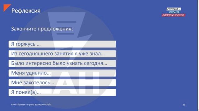 «В подведении итогов работы на занятии педагог обращает внимание на то, что именно благодаря успешным и счастливым людям развивается наша страна, а Мир знает о нашей науке и культуре, о покорении космоса и высоких достижениях в медицине», — говорится в материалах.