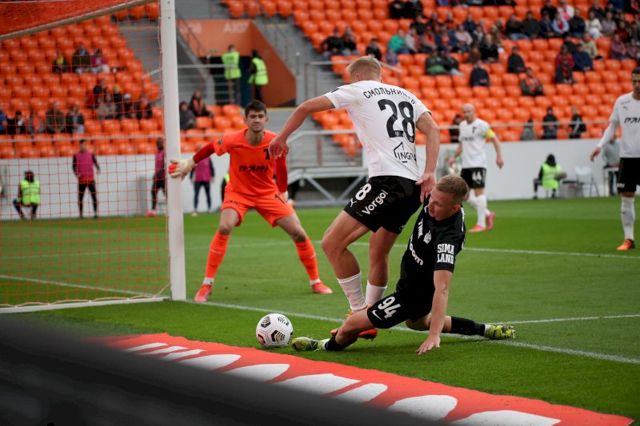 На 84 – й минуте уральцы забили второй мяч. Мингиян Бевеев выдал шикарный навес с правого фланга, Эрик Бикфалви переиграл в воздухе Дамьена Ле Таллека и головой отправил мяч в угол ворот Егора Бабурина.
