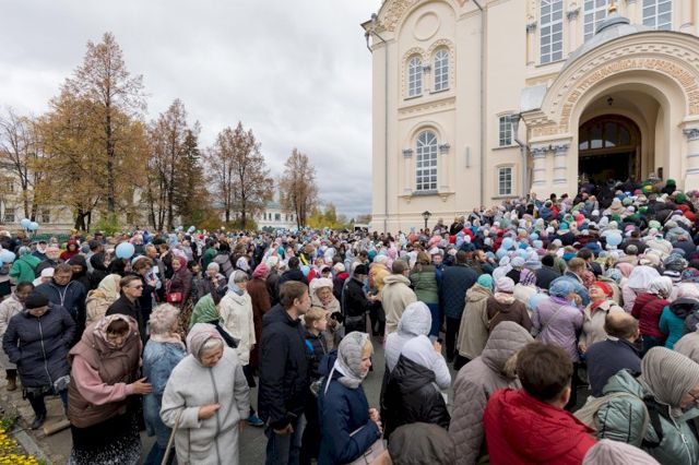 К паломникам на общей молитве в одном из крупнейших храмов России присоединились еще две тысячи православных. После торжественной литургии гости праздника совершили крестный ход по территории монастыря.
