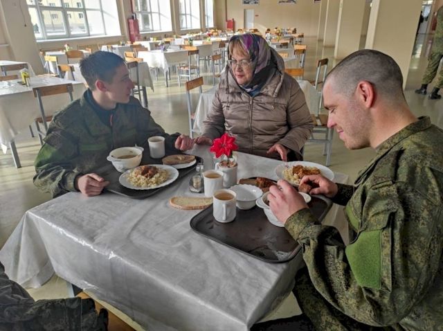 Она отметила, что мест в казармах хватает всем. Мобилизованным также выдают три сухпайка, одежду, фляжки и котелки. Кормят, по словам Мерзляковой, призывников вкусно. В рационе - говядина, свинина, курица, два вида супа. "Ребята х валят", - отметила омбудсмен.