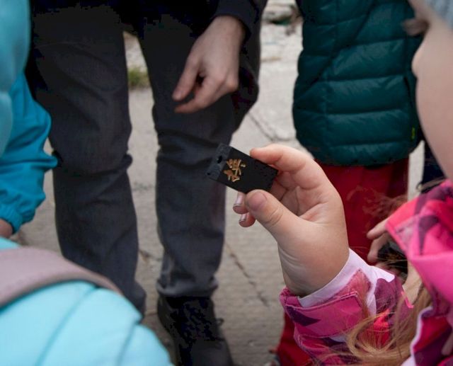 Художники погуляли с детьми, которые живут в ПВР и научили ребят делать с помощью туши печати из вещей, которые были найдены во время прогулки. Мария и Егор говорят, что очень важно, чтобы дети были любопытными к окружающему миру и друг другу, поэтому и предложили такую прогулку в поиске приключений. Они планируют продолжить поездки в этот и в другой ПВР.