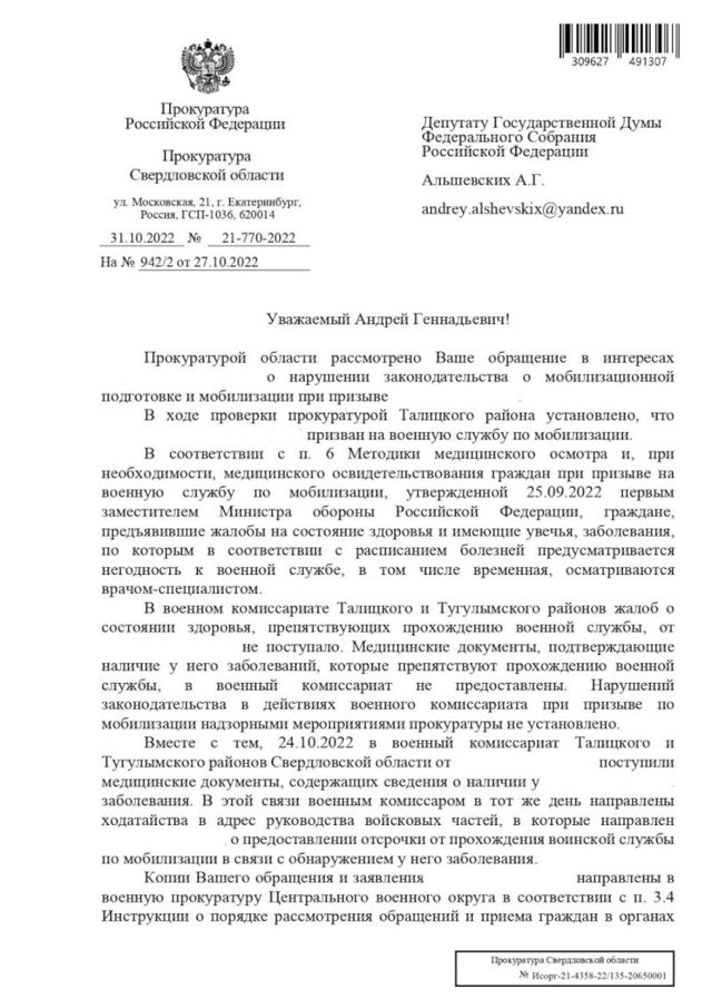 Как выяснилось, у одного из мобилизованных оказалось трое детей, что дает отсрочку от частичной мобилизации. У другого выявлены хронические заболевания. Коллега Альшевских Максим Иванов также отчитался о возвращении из зоны СВО мобилизованного. Но по другой причине.