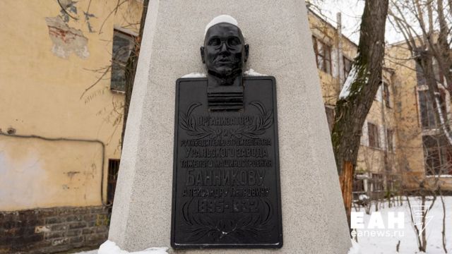 На площади установлен памятник директору строительства Уралмашзавода Александру Банникову. В стелу замурована урна с его прахом.