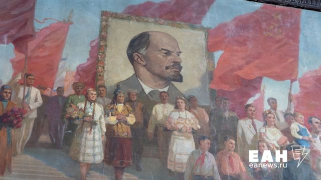 Внутри там сохранились артефакты советской жизни. Например, на первом этаже в бывшем помещении музея можно найти барельефы, посвященные жизни завода, а на лестничных холлах - полотна в стиле соцреализма о будущем коммунистического человека.