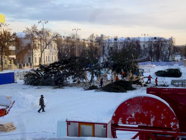 Главную елку Екатеринбурга привезли на территорию будущего ледового городка на площади 1905 года в ночь на 8 декабря. В этом году у городской елки юбилей – 85 лет. Впервые зеленую красавицу на главной площади Свердловска поставили на Новый год в 1937 году. Правда, в этом году дерево простоит недолго – ледовый городок снесут уже 15 января.
