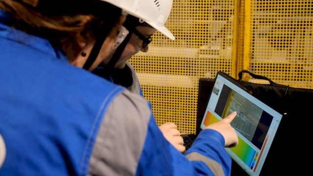 Как сообщает пресс-служба компании, диагностику производят с помощью цифровой системы визуализации звука — SVS (sound visualization system). Специальная решетка с микрофонами и видеокамерой улавливает звуковые вибрации в механических частях агрегатов, свойственные процессам деформации или их началу, после чего производит видеофиксацию проблемного узла.