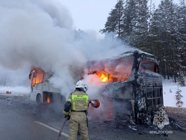 В Свердловской области сегодня произошло возгорание рейсового пассажирского автобуса на трассе между Екатеринбургом и Североуральском. Из салона успели выскочить 24 человека, сообщает пресс-служба ГУ МЧС по региону.