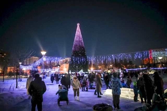 Дед Мороз и Снегурочка «зажгли» елку миллионом огней. Главная красавица городка символически подчеркивает уникальность Верхней Пышмы, имеющей официальный бренд "Медная столица Урала". Технические возможности иллюминации позволяют транслировать на елке всевозможные графические элементы и дизайнерские решения. В этом году на дереве «бегает» заяц – символ 2023 года.