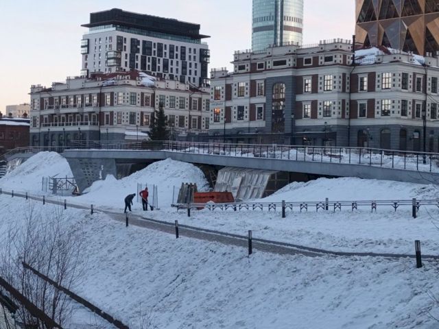В центре Екатеринбурга закрыта для прохода часть пешеходной набережной реки Исеть. Прохожих предупреждают об опасности, при этом причины ограничений понятны не до конца.
