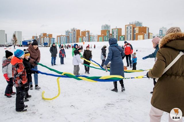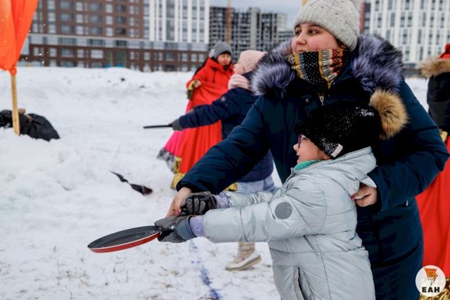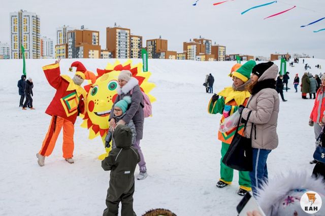 Праздничные мероприятия проводились практически весь день. Помимо концертной программы, для гостей были организованы традиционные забавы. Все желающие могли поучаствовать в соревнованиях по катанию на лопате, по метанию веников, бегу в мешках, перетягиванию каната или в боях подушками на бревне. Также прошли семейные спортивные эстафеты, участники строили и завоевывали крепости. Юные горожане получили сладкие призы, а главный застройщик района угощал всех желающих блинами.