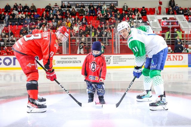 Героями матча были Варя Кормильцева и Женя Таскин, которые справились с онкологией. Дошкольники провели торжественное вбрасывание и объявили игроков команд.