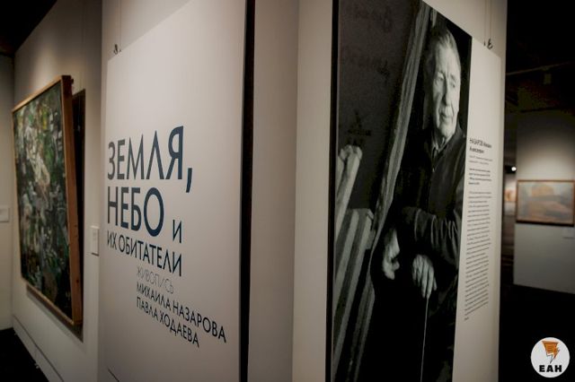 Первая выставка, представленная в новом пространстве, — «Земля, небо и их обитатели» художников из Башкирии Михаила Назарова и Павла Ходаева. Работы этих мастеров, которые и в жизни являлись друзьями, перекликаются между собой и тематически, и по стилю.